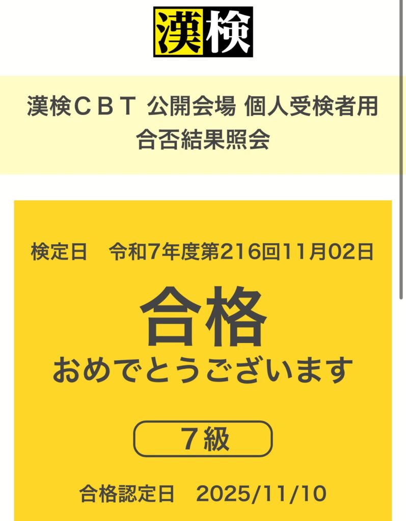先月筆記で受けた7級と3級は、まだ合否不明。