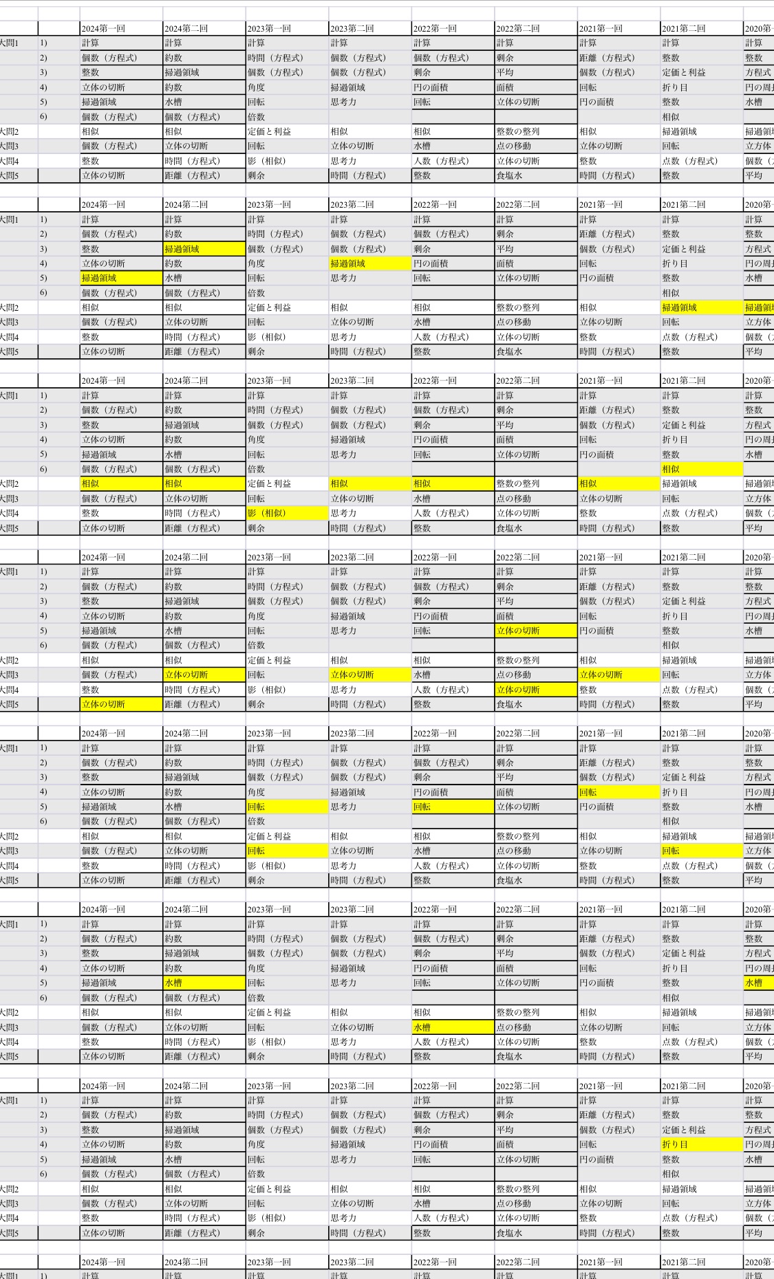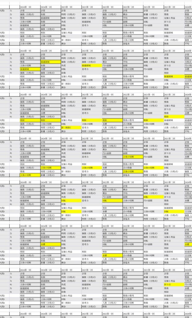 昨日、スター講師がまとめてくれたとある中学の算数の傾向。