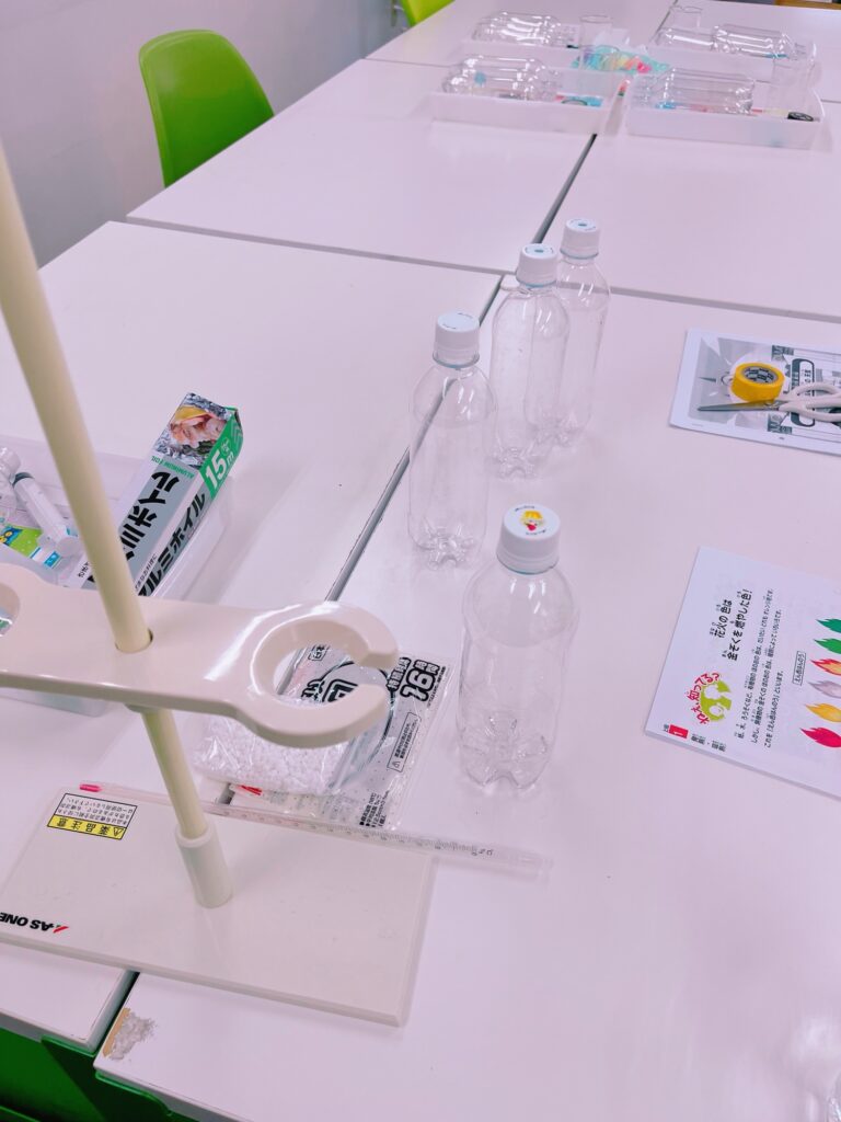 今日は ペットボトルの中で 雲をつくって 、うずを竜巻のようにしてみる